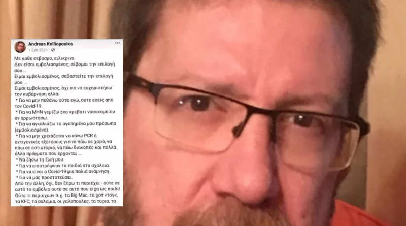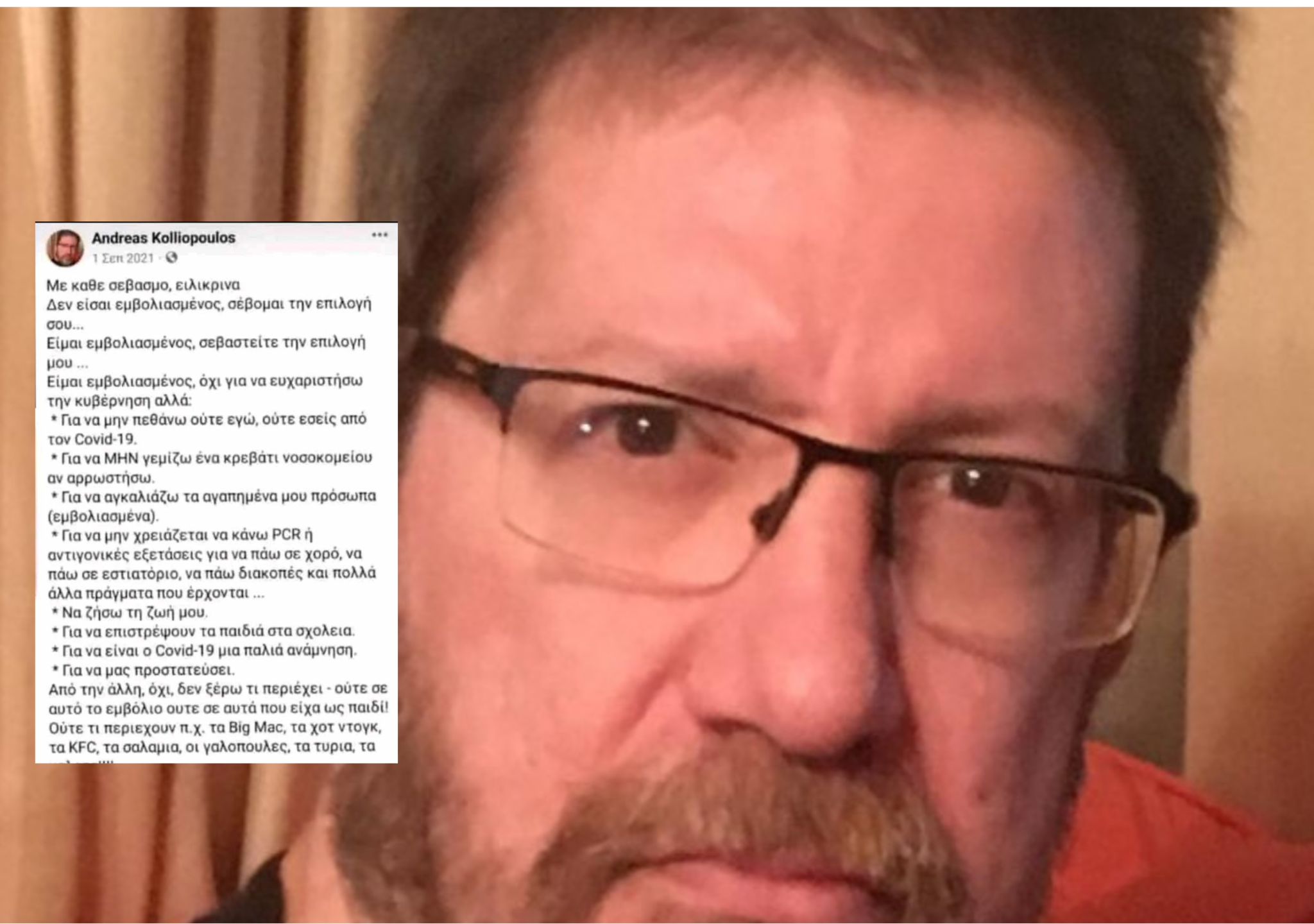 Ανδρέας Κολιόπουλος: Ο δικηγόρος από την Πάτρα δήλωνε περήφανος για τον εμβολιασμό κατά του Covid θεωρώντας ότι προστατεύει τον εαυτό του και τα αγαπημένα του άτομα – Βρέθηκε ξαφνικά νεκρός με πρόβλημα στην καρδιά