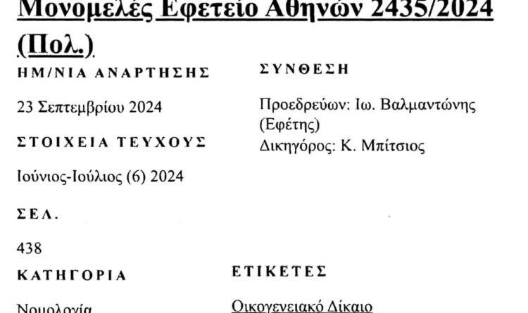 «Μονομελές Ἐφετεῖο Ἀθηνῶν 2435/2024 (πολ.)