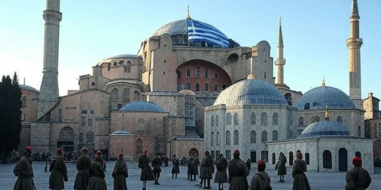 Η φωτογραφία με τον ελληνικό στρατό έξω από την Αγιά Σοφιά έγινε viral στην πλατφόρμα X με εκατομμύρια προβολές από χρήστες σε παγκόσμιο επίπεδο. Αφού πρώτα τονίσω ότι κατά το παρελθόν o Βρετανός Paul Golding είχε αναφέρει ότι «η Τουρκία είναι πλέον ο νούμερο 1 εχθρός της Ευρώπης», σημειώνω επιπλέον ότι η μονταρισμένη ανάρτησή του με τη γαλανόλευκη σημαία στους τρούλους της Αγιά Σοφιάς προκάλεσε νέες και σφοδρές αντιδράσεις στα μέσα κοινωνικής δικτύωσης της Τουρκίας και φυσικά όχι μόνον.