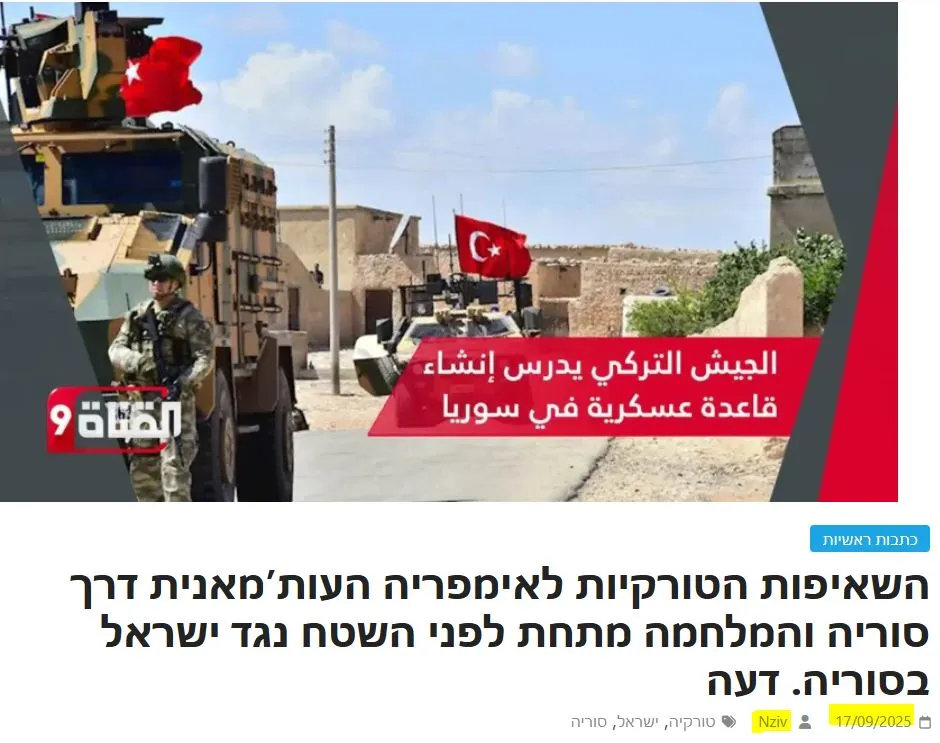 «Οι τουρκικές φιλοδοξίες για την Οθωμανική Αυτοκρατορία μέσω της Συρίας και ο πόλεμος κάτω από την επιφάνεια εναντίον του Ισραήλ στη Συρία», γράφει το ισραηλινό δημοσίευμα