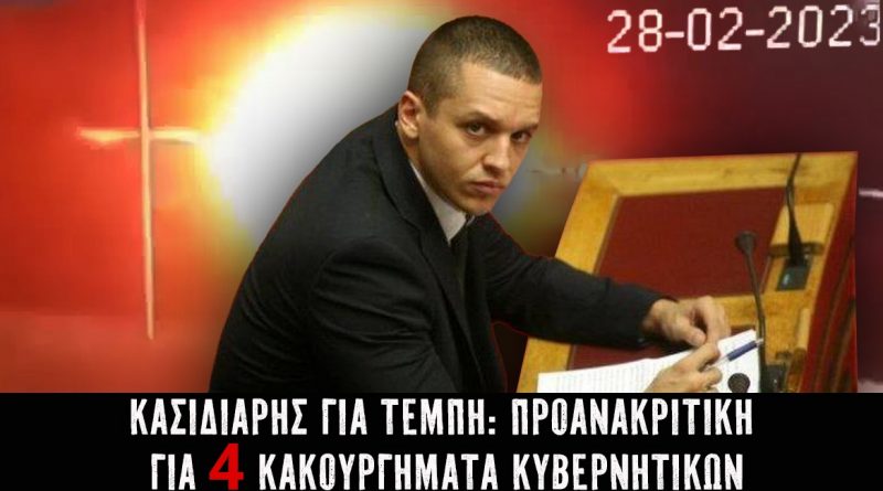 Κασιδιάρης για Τέμπη: Προανακριτική για τέσσερα κακουργήματα κυβερνητικών