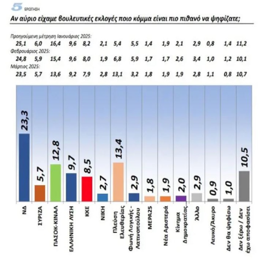 Δημοσκόπηση GPO: Καταρρέει στο 23,3% η ΝΔ – Εκτός Βουλής η Φωνή Λογικής
