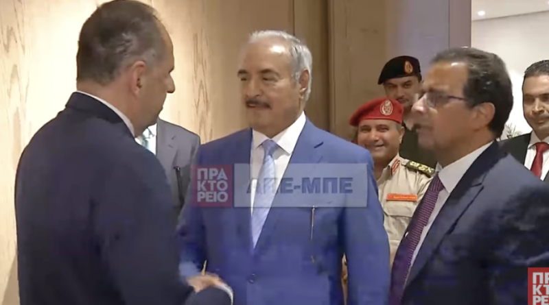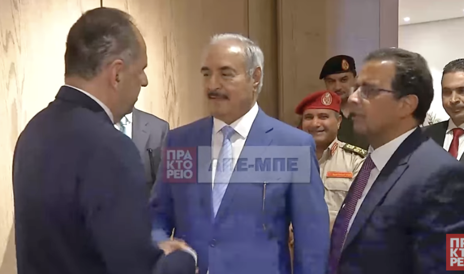Είχα σήμερα την ευκαιρία να συναντηθώ στη Βεγγάζη με τον Στρατάρχη Haftar, καθώς επίσης και με μέλη της οικογένειάς του υπό τη θεσμική τους ιδιότητα. Είχα την ευκαιρία να συζητήσω ζητήματα, τα οποία αφορούν το μεταναστευτικό, τις θαλάσσιες ζώνες, καθώς επίσης και τη διμερή μας συνεργασία.
